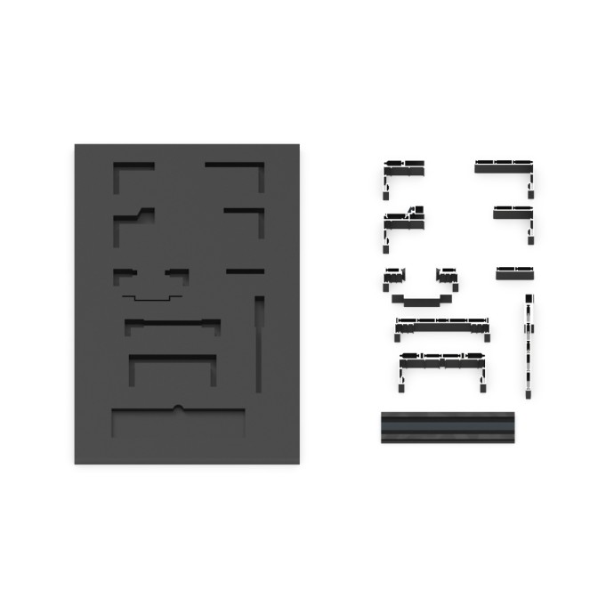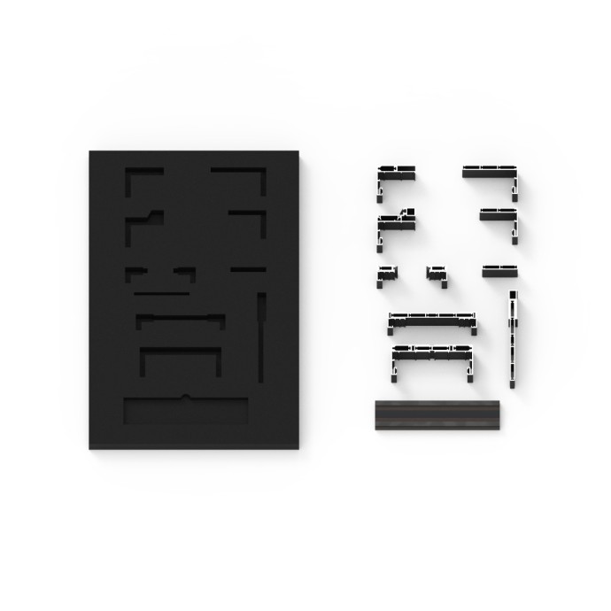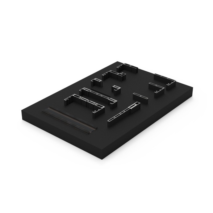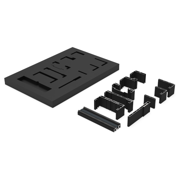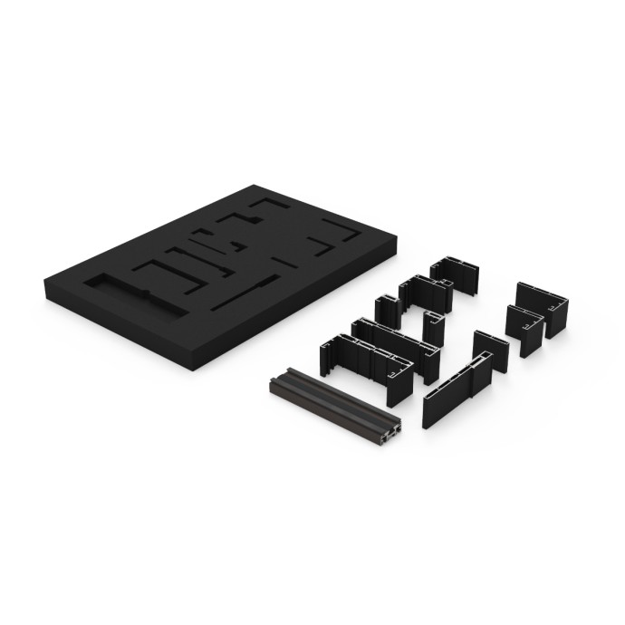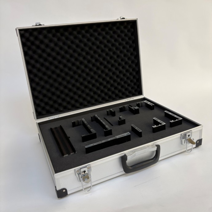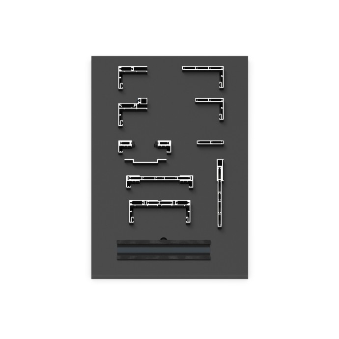 MALETÍN DE MUESTRAS DE LA COLECCIÓN DE JAMBAS OGC. SU ENSAMBLAJE Y SUS DIMENSIONES PERMITEN UNA VISUALIZACIÓN CLARA Y CÓMODA DE LAS POSIBILIDADES QUE OFRECE LA SERIE A SU VEZ QUE CONTRIBUYE A UNA SENCILLA PORTABILIDAD Y TRANSPORTE.